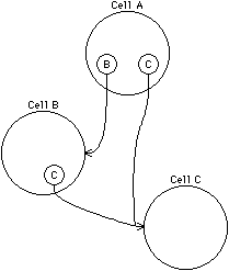 | The order of constraint execution is critical to ensuring a proper solution and correct layout. Electric solves all constraints inside a cell before moving up the hierarchy to other cells. When the hierarchy is more complex than a simple tree organization, care must be taken to ensure proper traversal so that lower-level cells are solved before the higher-level ones. For example, if cell C in Fig. 11.9 is changed, then cell B must be reevaluated before cell A, even though both contain instances of cell C. |
