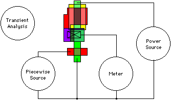 | It is interesting to examine the SPICE [Nagel] simulation environment in Electric, which can graphically specify all parameters. Connecting meter and source components to a circuit, and parameterizing them appropriately, allows a complete input and output to be determined (see Fig. 11.11). When the simulation runs, the output values are used to generate a waveform plot with artwork primitives. Since this plot is a cell like any other, it can be saved as documentation, zoomed into for closer examination, and even altered with the normal editing commands to fudge the data! |