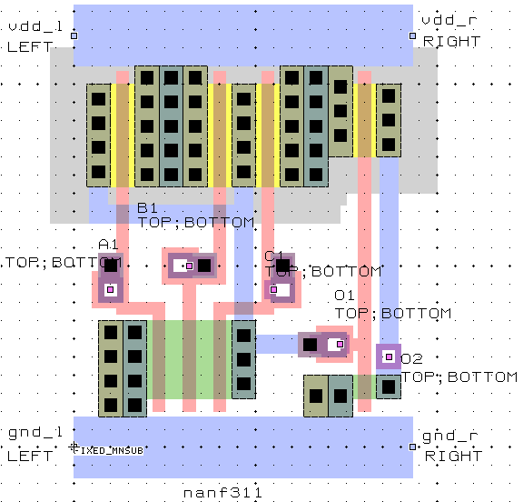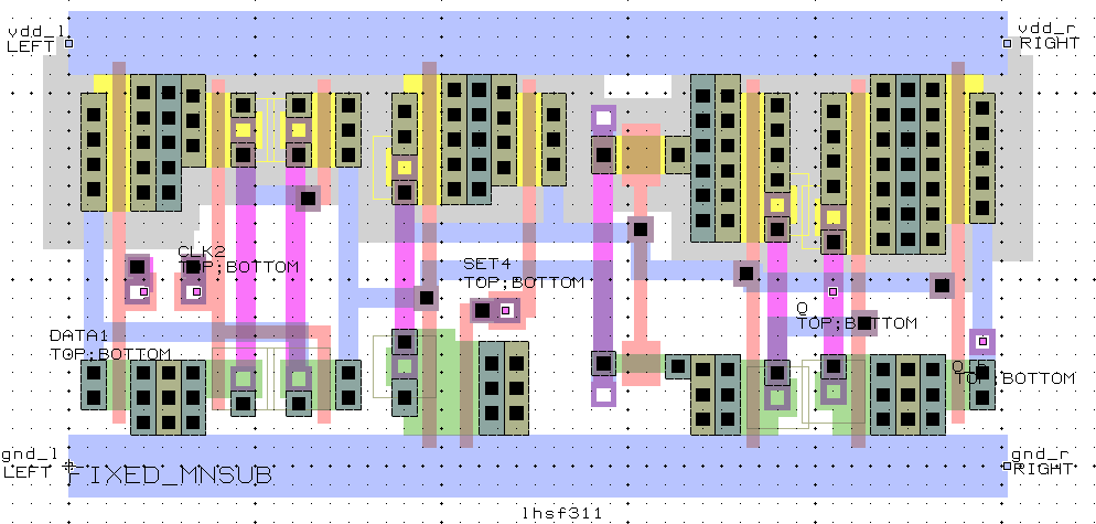 Following is the list of cell groups available in the library. AND OR GATES OR AND GATES AND/NAND GATES OR/NOR GATES BUFFERS TWO PHASE GATES DELAY GATE D FLIP FLOPS ADDERS INVERTERS LATCHES D-LATCHES REFERENCE SELECT LINEAR SCAN LATCH SWITCHES T FLIP FLOPS XOR/X-NOR GATES