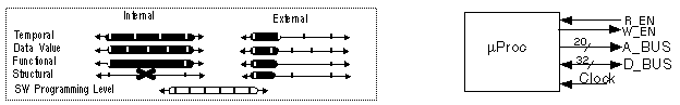 A convenient method for specifying a particular model's information content is to use the Internal / External (temporal, value, function, structure) notation. For example, the content of a particular RTL model could be specified as: