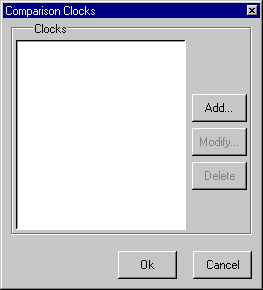 Clicking the Clocks button opens the Comparison Clocks dialog box. To add a signal, click the Add button to open the Add Clock dialog box, where you can define a clock signal name, a delay signal offset, the signal upon which the clock will be based, and whether the compare strobe edge will be the rising or falling edge or both. You can also use the Expression Builder to Specify a When Expression that must evaluate to "true" or 1 at the signal edge for the clock to become effective. ![]()